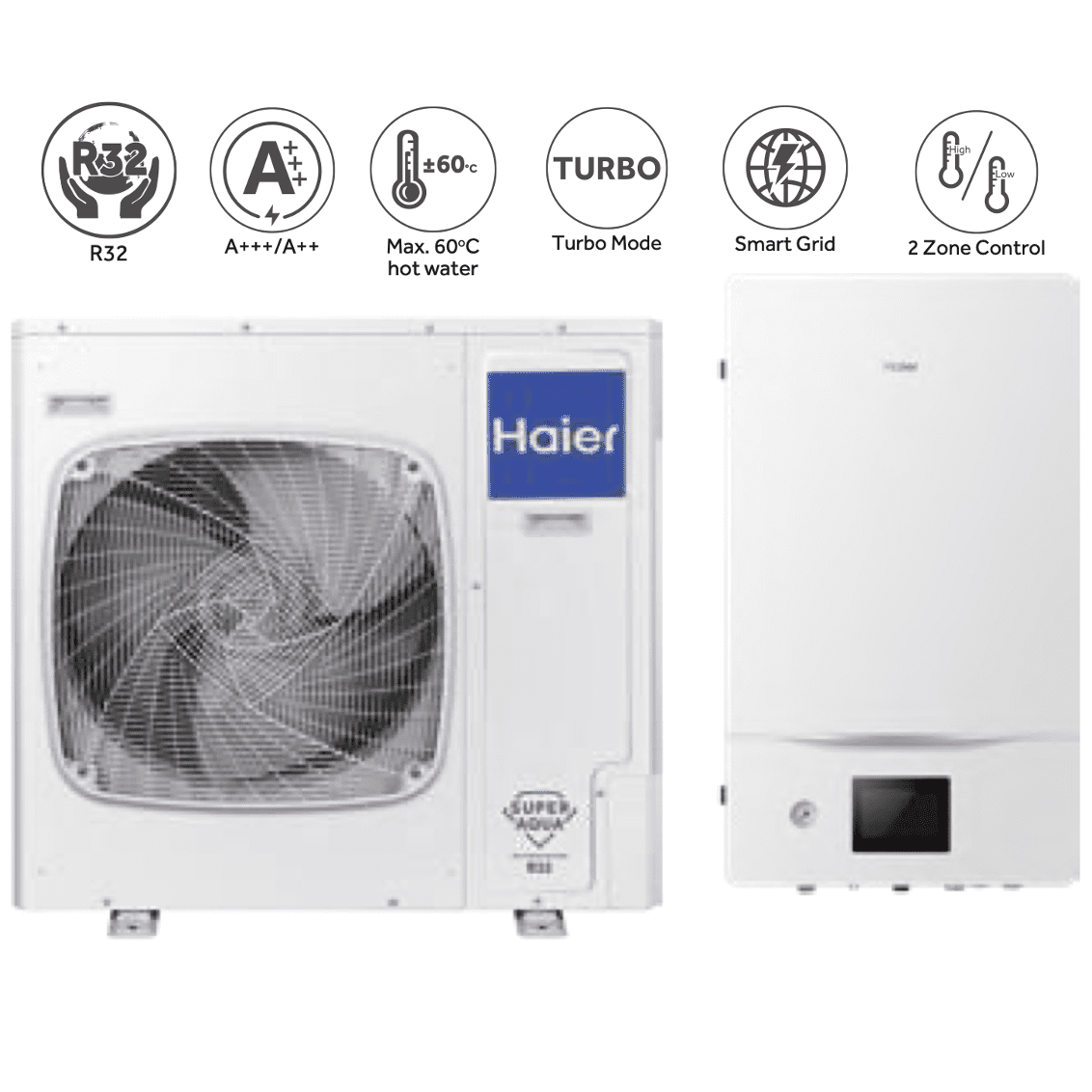 Haier HU102WAMNA/AW0102SNCHA a Haier Super Aqua Split sorozatába tartozó, 10 kW-os levegő-víz hőszivattyú rendszer. A szett egy HU102WAMNA beltéri hidraulikus egységből és egy AW102SNCHA kültéri egységből áll, amelyeket épületek fűtésére, hűtésére, valamint használati melegvíz (HMV) készítésére terveztek.